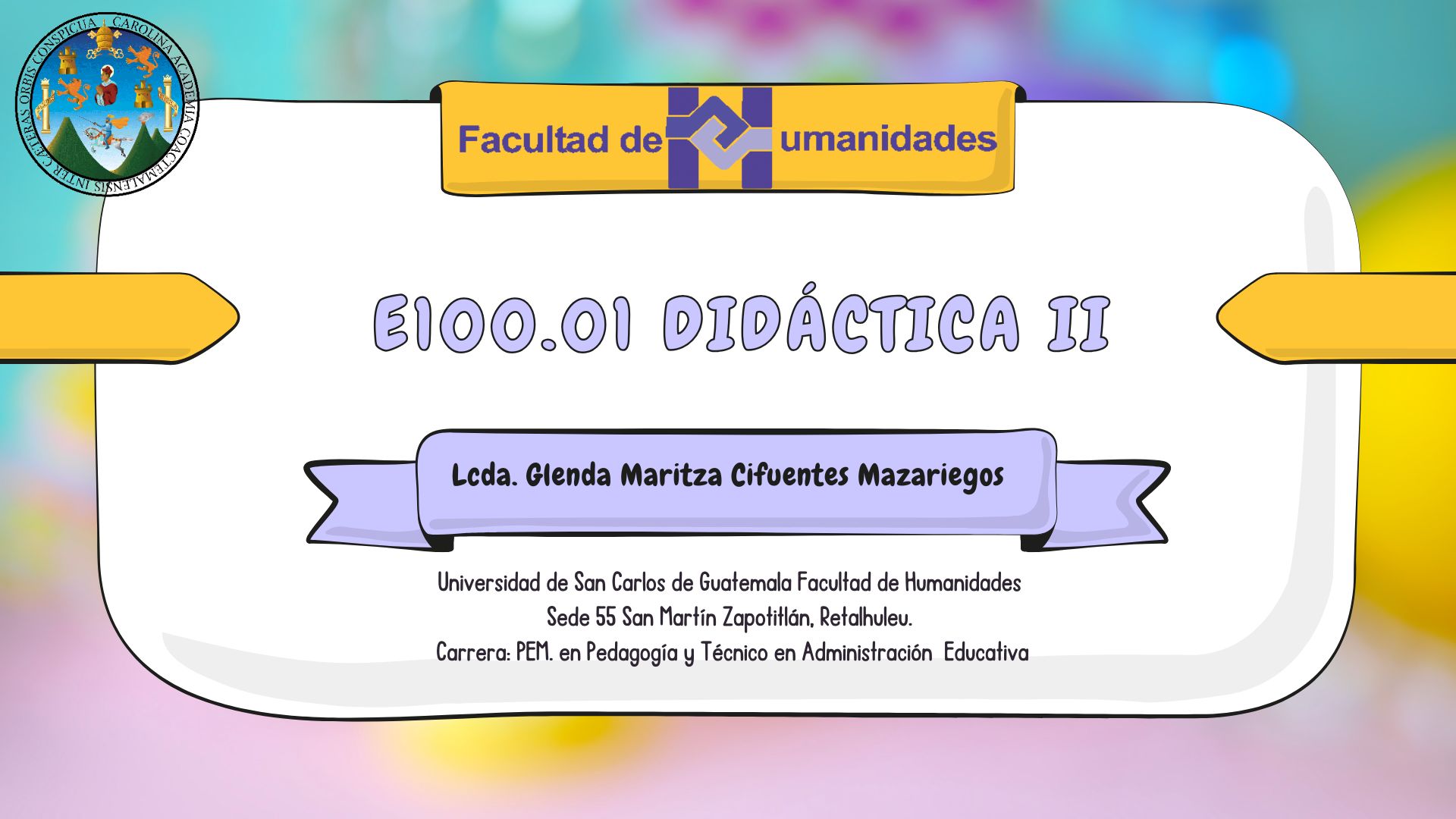 E100.01 Didáctica II. El curso prepara a los estudiantes para la sistematización y aplicación de los contenidos de la Didáctica I, por medio de exposiciones, investigaciones, talleres y laboratorios para el ejercicio de la docencia. El curso exige el desarrollo de habilidades cognitivas e instrumentales; ello requiere apropiarse de la forma y el contenido explicito en el proceso enseñanza -aprendizaje. El curso contempla el planeamiento del aprendizaje, la redacción de competencias, los conocimientos y las prácticas de métodos, técnicas y estrategias de aprendizaje, la elaboración y uso de material didáctico, las técnicas y modalidades de verificación del aprendizaje para su respectiva utilización, en contextos interculturales.