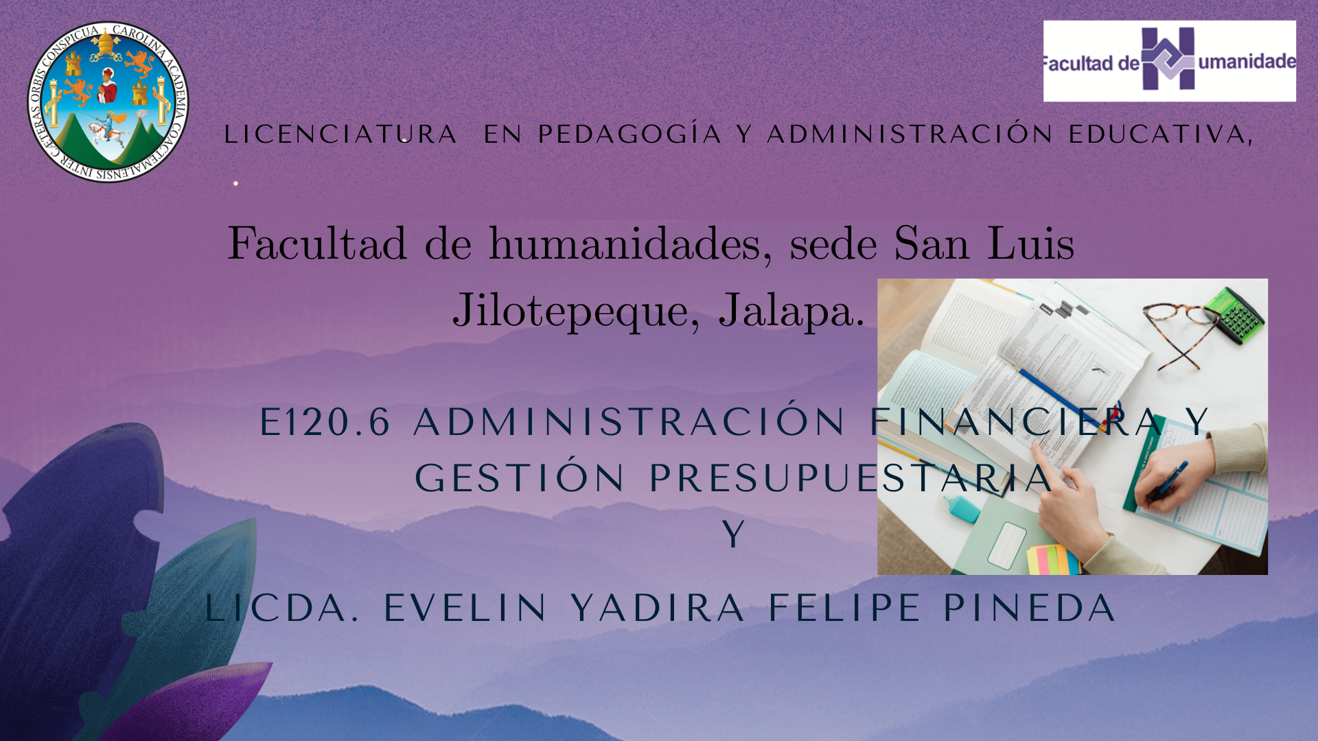 E120.6 ADMINISTRACIÓN FINANCIERA Y GESTIÓN PRESUPUESTARIA. LICDA. EVELIN YADIRA FELIPE PINEDA